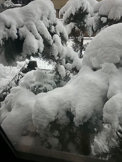 夜空が白いとあ〜〜、また、雪が降っているんだな‼️とカーテン越しに積雪量を確認します。